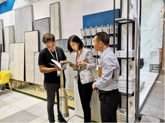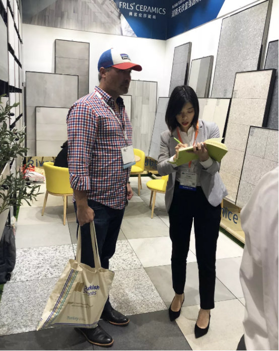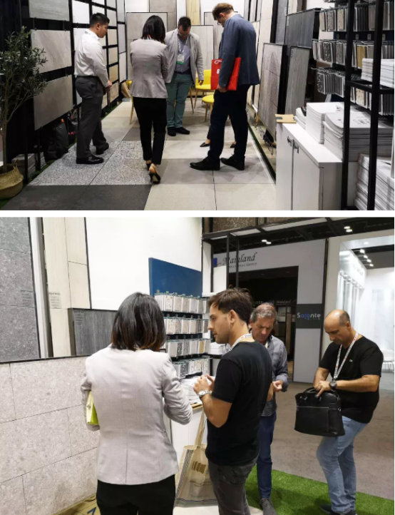 來自全球各地的客商,紛紛來到天欣科技×佛諾倫莎的展館參觀與洽談貿(mào)易合作,對于天欣科技在仿古磚的質(zhì)感和花色上,以及對于代表目前國內(nèi)高水平的2cm厚磚,客戶給予了充分的肯定,我們也再一次向世界展現(xiàn)了“CHINA”的力量。