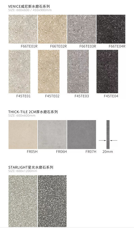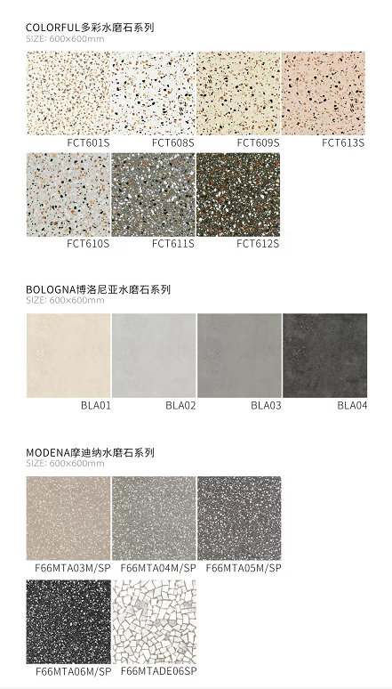 5、設(shè)計理念:2019春季,佛諾倫莎隆重推出900×900mm、600×1200mm兩大黃金規(guī)格系列新品,通過多色多面多質(zhì)感的設(shè)計手法,采用5V工藝和特質(zhì)的釉料配方,傾力打造集拋光面、柔光面、半拋面、自然啞光面四種不同的表面質(zhì)感產(chǎn)品,花色以大理石紋為主,同時涵蓋水泥質(zhì)感、水磨石等,顏色以不同深度的灰色為主,同時搭配經(jīng)典的米黃色、大地色等,整體風格現(xiàn)代簡約,適應(yīng)各種空間的不同風格應(yīng)用,以滿足FRLS現(xiàn)有[工程 · 出口 · 家裝 · 設(shè)計師]渠道的需求。
