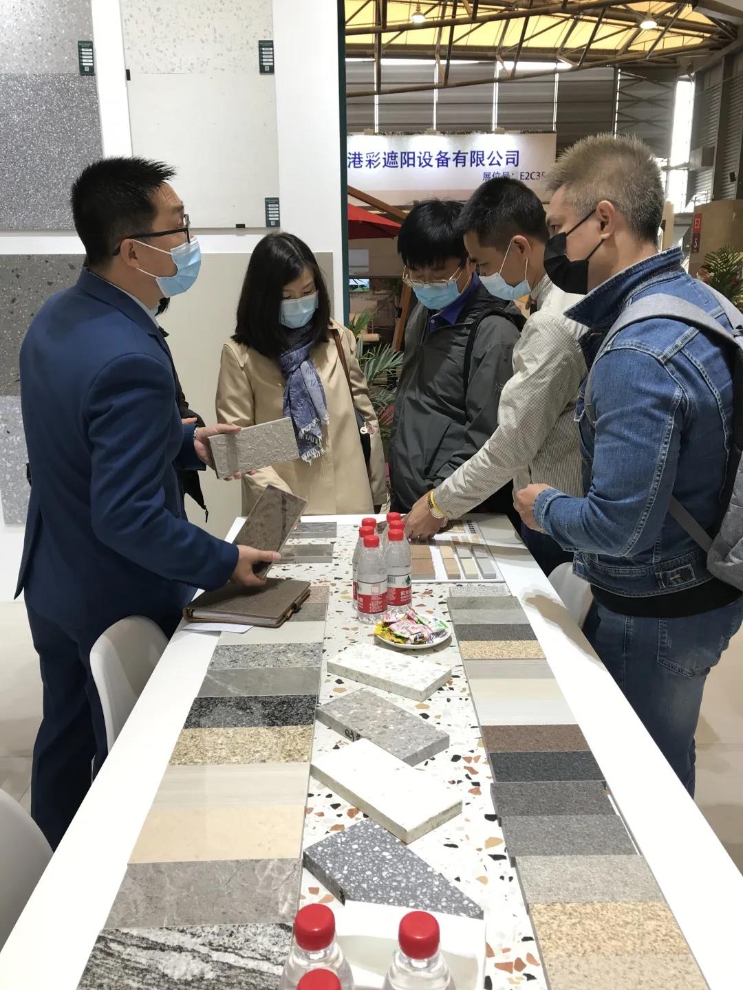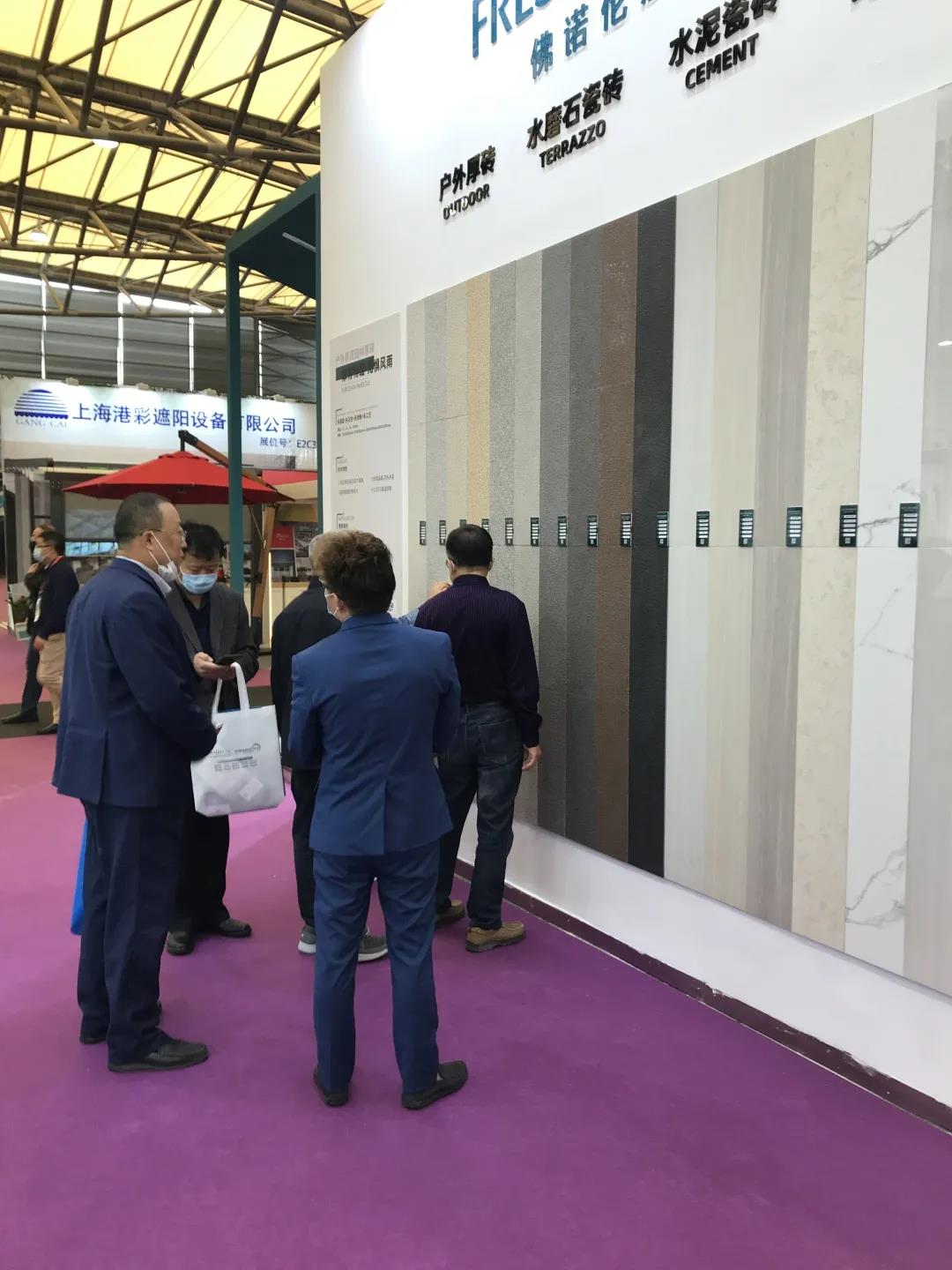 此次上海國際酒店工程設(shè)計與用品博覽會,佛諾倫莎瓷磚重點展出了18mm高光面戶外園林厚磚、水磨石瓷磚、水泥瓷磚等現(xiàn)代仿古磚系列,迎來全球各地的客商朋友參觀和合作洽談。